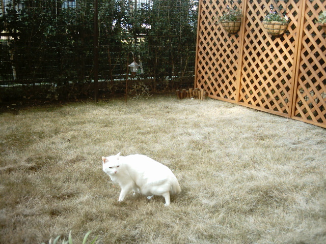 完全内猫の朔太郎にとっては家の庭がサバンナ草原である